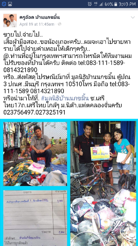 แล้วก็ เคลียร์เสื้อผ้าในตู้ เอาไปแบ่งให้ครูเขาเอาไปขายต่อ หาทุนเรียนให้น้องๆ
