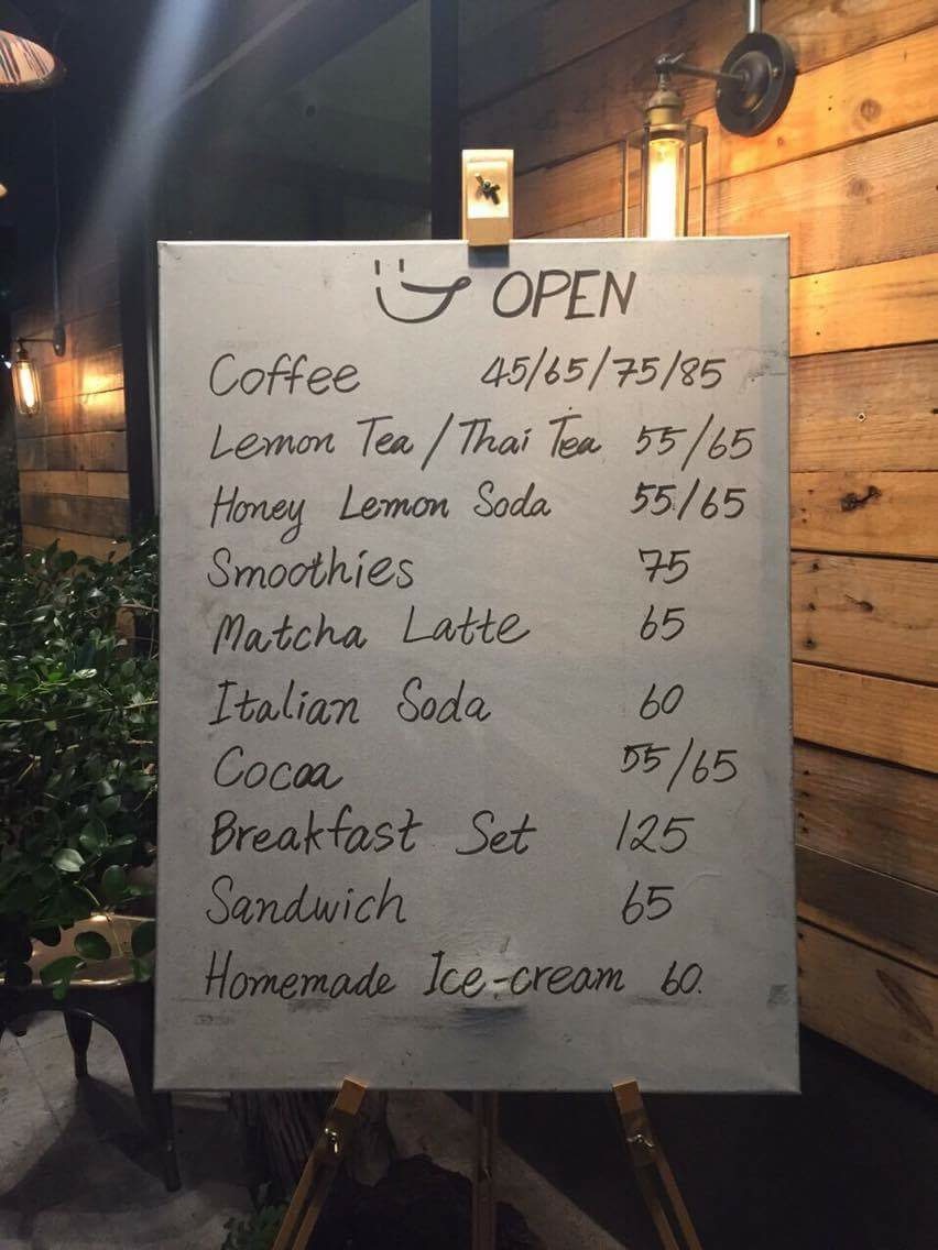 พอสำรวจชั้นล่างเสร็จแล้วก็สำนึกได้ว่า เอ๊ะ! เรายังไม่ได้สั่งอะไรเลยนี่หน่า5555 งั้นเรามาดูเมนูกันบ้างดีกว่าค่ะว่ามีอะไรบ้าง ที่นี่จะมีเครื่องดื่ม ขนมหวานและอาหารคาวนะคะ ราคาเราว่ากำลังอยู่ในระดับกลางๆนะคะ โอเคเลยอะ