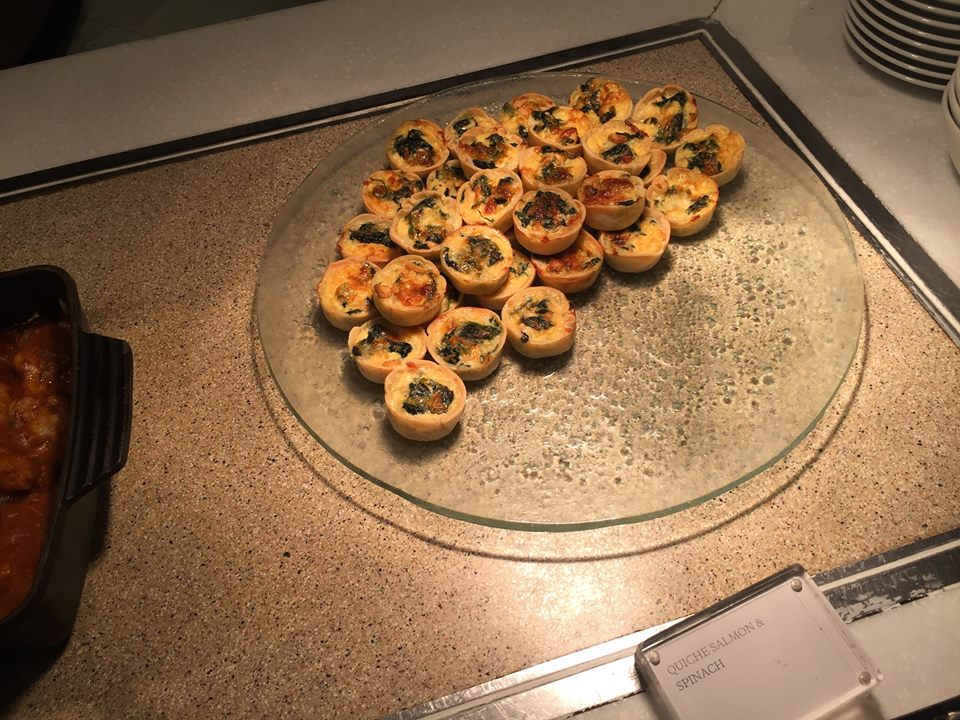 โซนอาหารตะวันตก เริ่มจาก quiche egg and spinach ตัวแป้งแข็งกระด้าง กลิ่นไข่แรง ไม่มีกลิ่น spinach เลย