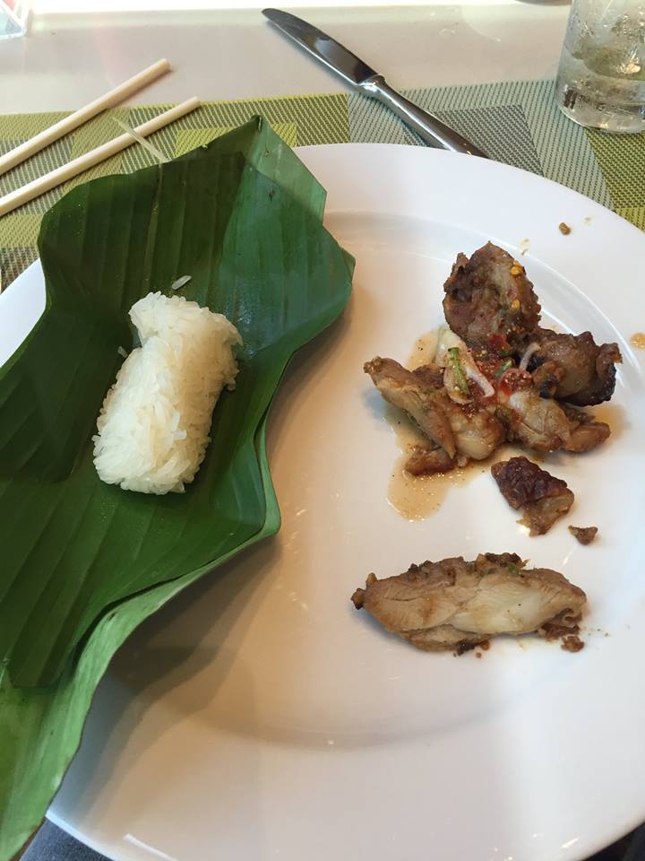 ข้าวเหนียวไก่ย่าง ไก่หอมรากผักชี กระเทียม พริกไทย รสชาติเค็มนิดๆ ข้าวเหนียวนึ่งได้ดี ไม่แฉะ ไม่เละ ไม่แข็ง แจ่วรสเผ็ดนิดๆ เค็มหวาน