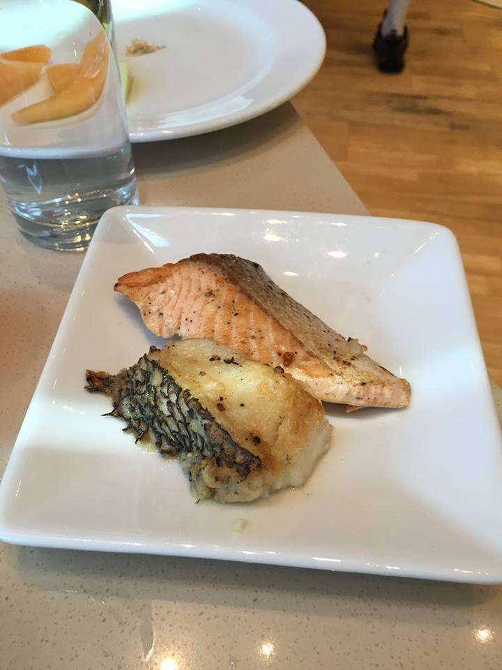 โซนอาหารปรุงสุกแล้วมี sea bass with povencal sauce ปลาร่วน นุ่ม รสออกเปรี้ยวมันเล็กๆ