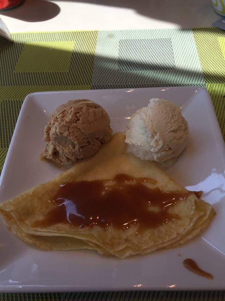 เครปไอศกรีม ไอศกรีมที่นี่ใช้ movenpick โดยเครปนุ่ม บาง ใช้ได้เลย ส่วนไอศกรีมที่เลือกก็มี caramelita ซึ่งเนื้อเนียน รสหวาน ปนขมเล็กน้อย มีโดปนด้วย และ vanilla dream ซึ่งเนื้อเนียน นุ่ม หอมวานิลลา หวานแต่ไม่เท่า caramelita