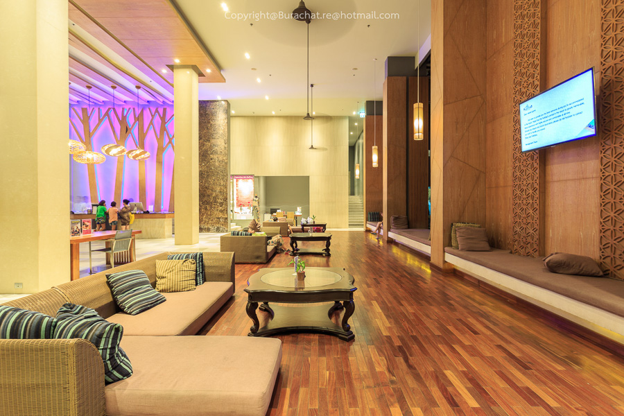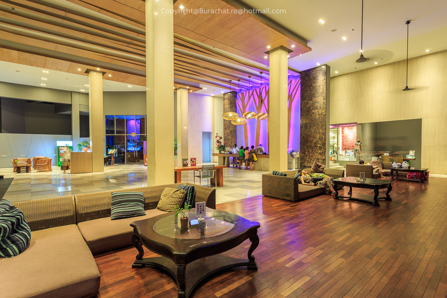 ล๊อบบี้ของที่นี่มีขนาดค่อนข้างใหญ่ เป็นแบบโอเพ่นแอร์ สูง โปร่ง