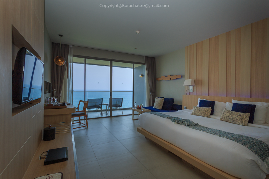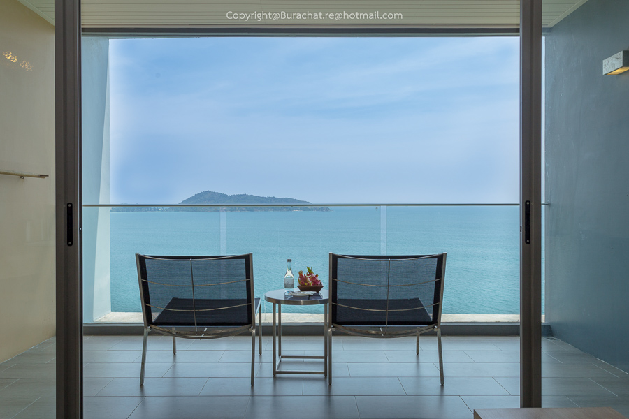 ตัวโรงแรมไม่ติดทะเล แต่สามารถชมวิวทะเล ได้จากภายในห้องพักเลย