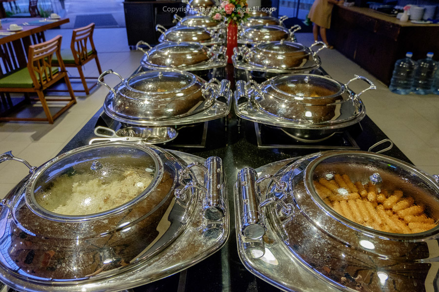อาหารเช้าก็มีให้เลือกทานหลายชนิด ไส้กรอกหมู ไก่ แฮม ข้าวผัด ขนมปังนานาชนิด