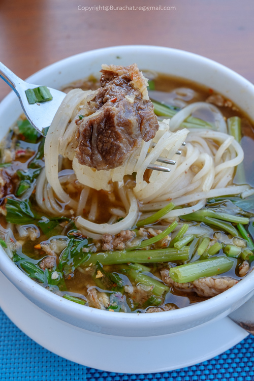 มีมุมก๋วยเตี๋ยวด้วย มาเป็นรถเข็นเลยได้บรรยากาศดี ผมลองสั่งเส้นเล็กน้ำ เนื้อเปื่อยมาทานก็อร่อยดีไม่ผิดหวัง