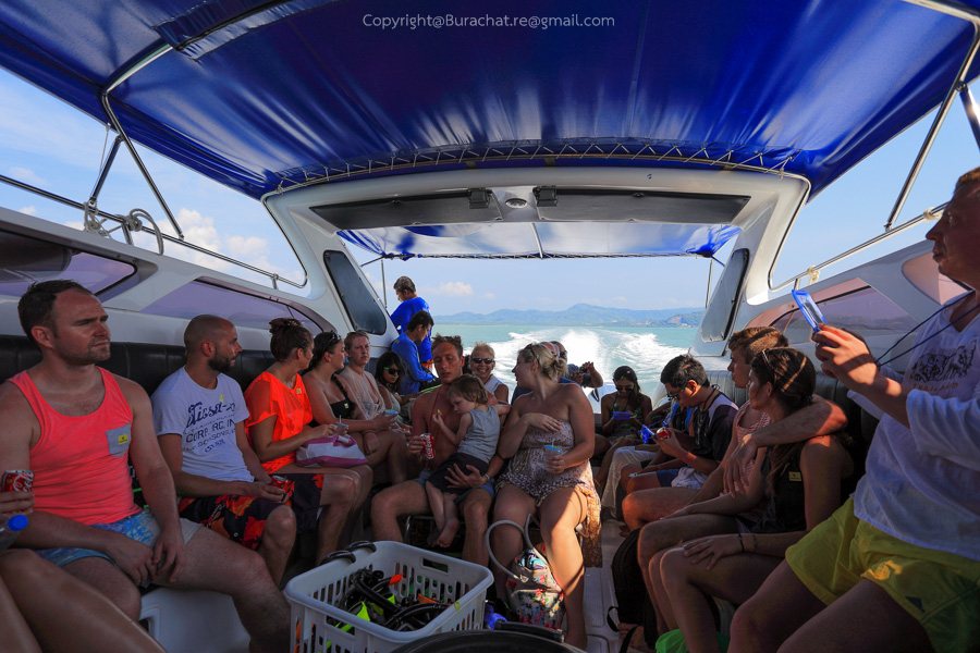 จากนั้นก็จะแบ่งนักท่องเที่ยวลงเรือตามสีของสติ๊กเกอร์ที่แปะกับเสื้อ โดยผมและเธอเป็นเพียงคนไทย 2 คนในทริปนี้