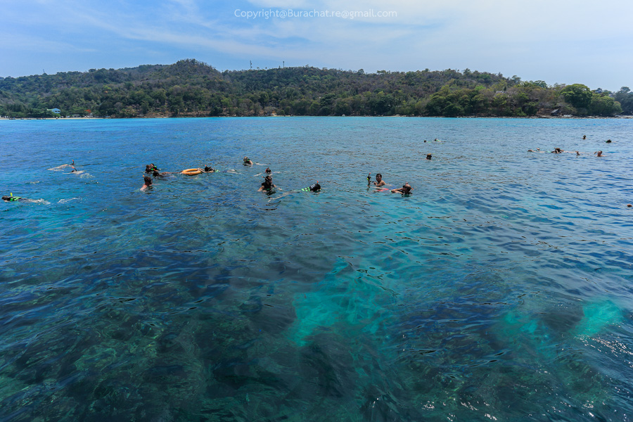 นั่งเรือมาได้พักใหญ่ พี่ไกด์ก็แจกหน้ากากสน็อกเกิล พร้อมอธิบายวิธีใช้ และบอกว่าเราจะจอดเรือตรงนี้
