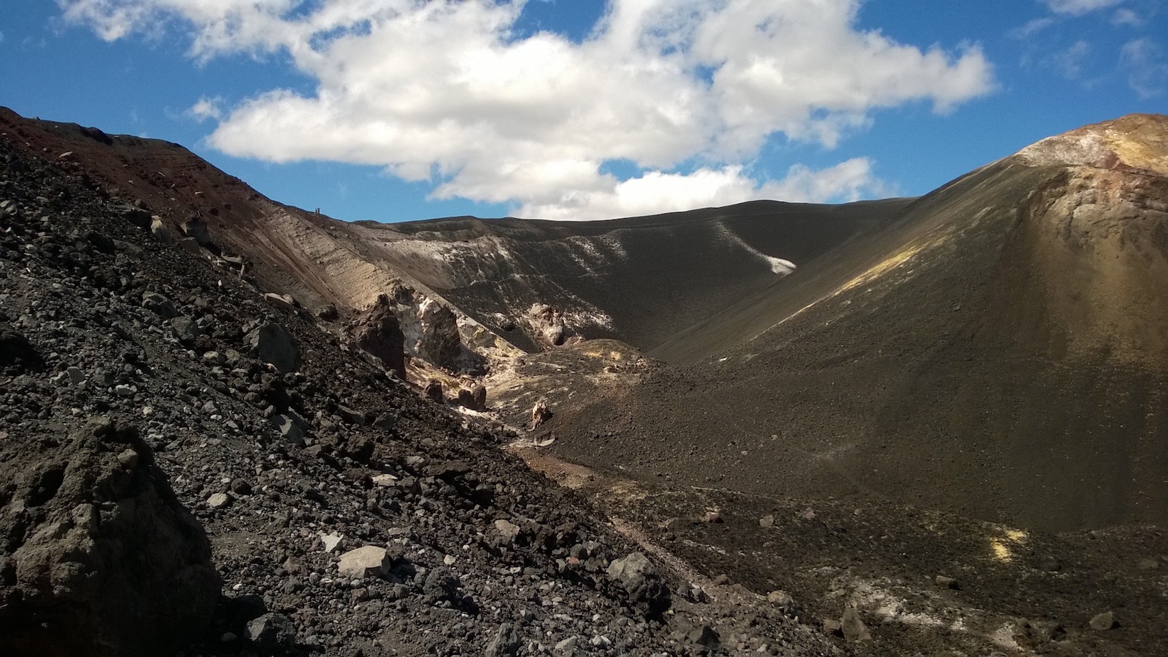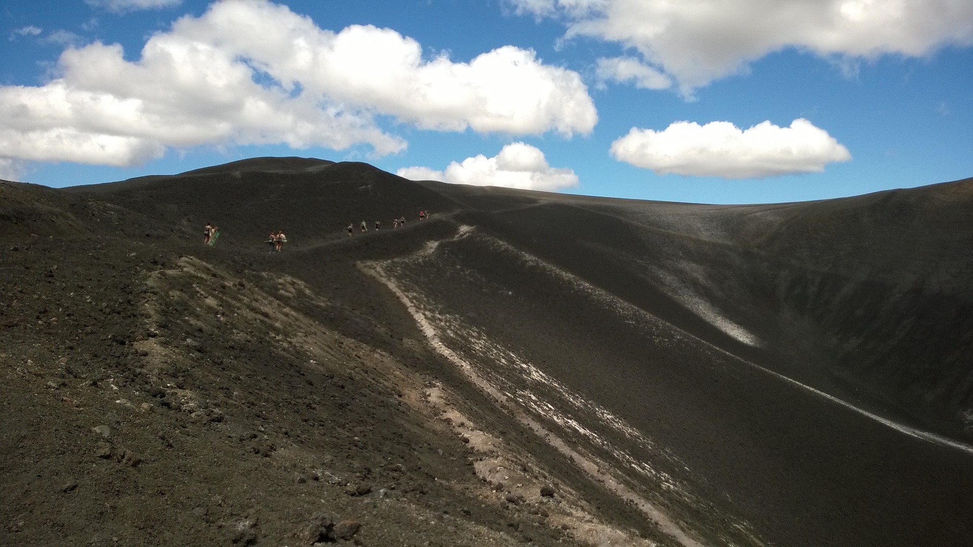 ที่ภูเขาไฟเซร์โร่เนโกรนี้ ทั้งร้อน ทั้งแห้ง (ก็ภูเขาไฟน่ะเธอ...) เดินหลบ เดินหลีก เดินข้ามหินภูเขาไฟที่เกิดจากการที่ลาวาเย็นตัวและแข็งกลายเป็นหิน เดินขึ้นยิ่งสูง ลมยิ่งแร๊งงงง.. แรงแบบแรง สัมภาระทั้งหลายก็สะพายอยู่ที่หลัง ไม้กระดานที่ถืออยู่นี่ก็โต้ลมจนตัวเล็กๆของผู้หญิงไทยแทบปลิว รออะไรคะ..ส่งสายตาหวานไปให้หัวหน้าแก๊งค์ บอกว่า “ไม่ไหวแล้วยู ลมแรงกว่านี้อีกนิด ฉันคงตกขอบภูเขาไฟไปเลย” เขาก็เข้ามาช่วยถือกระดานไม้จนขึ้นไปถึงยอด