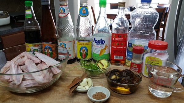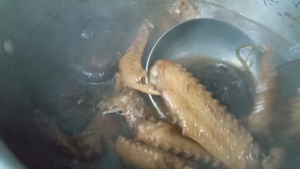 จากนั้นก็เอาปีกเป็ดที่ทอด มาถ่ายใส่หม้อค่ะ