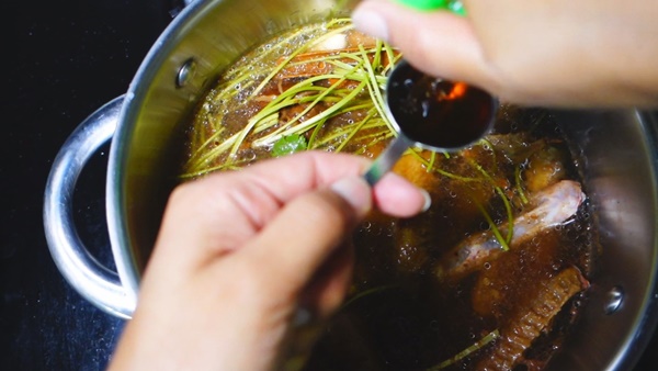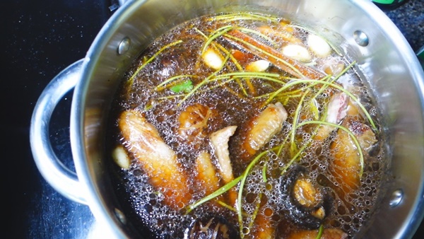 ตาตักเอาเครื่องตุ๋น เช่น ข่า กระเทียม อบเชย รากผักชีออกจากหม้อค่ะ แล้วตุ๋นต่อ อีก ซัก ครึ่งชั่วโมง หรือจนเราพอใจปีกเป็ดเปื่อยแค่ไหนค่ะ