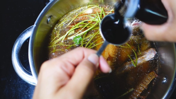 เมื่อปรุงรสเรียบร้อยแล้วก็คนให้เข้ากันนะคะ แล้วปล่อยให้เดือดค่ะ เราจะตุ๋นแบบนี้ ไฟกลางนะคะ ประมาณ 1 ชั่วโมงครึ่งค่ะ