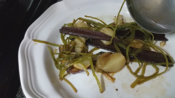 ใส่กระเทียม ข่า และ อบเชยลงหม้อค่ะ
