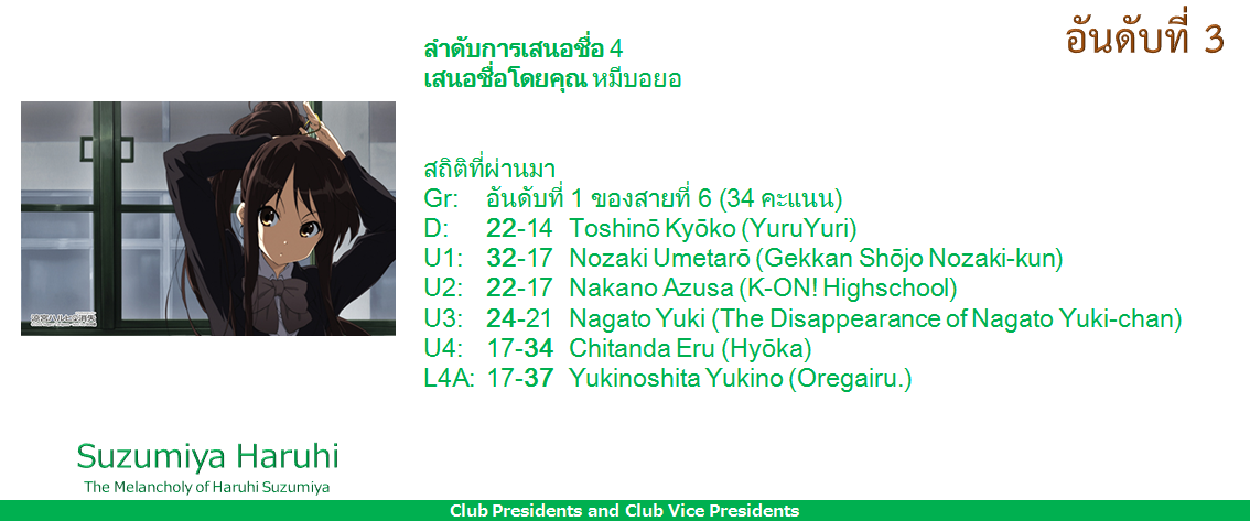 และแล้วก็จะขอประกาศผลอันดับที่ 1 ถึง 4 จากแต่ละโพล โดยเริ่มจากอันดับ 4 กันก่อนเลย