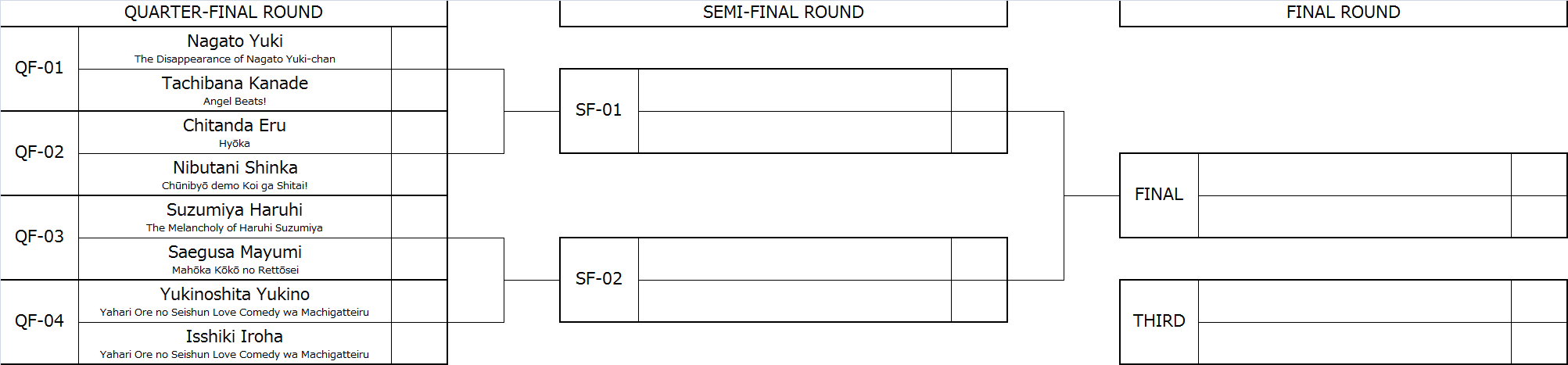 ระยะเวลาโหวตแต่ละรอบจะเป็น 2 วันเหมือนเดิม ผู้ชนะแต่ละคู่จะผ่านเข้าสู่รอบต่อไป (รองชนะเลิศ) ครับ แล้วหลังจากรอบรองชนะเลิศเราก็จะมีรอบชิงชนะเลิศและรอบชิงที่ 3 ด้วย