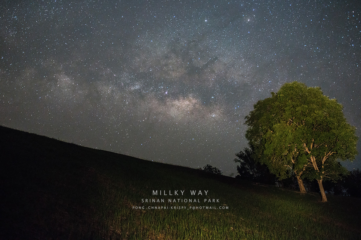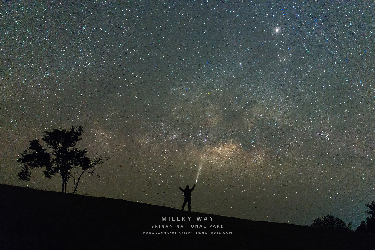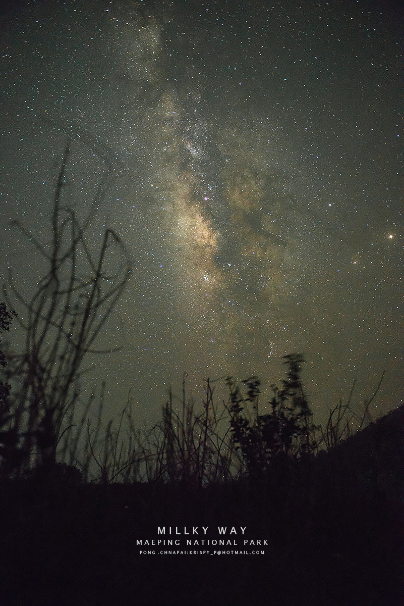 และแล้วก็ไดเวลาถ่ายดาวและล่าทางช้างเผือก ช่วงที่ผมไปทางช้างเผือกจะขึ้นประมาณ 5 ทุ่ม ก่อนหน้านั้นก็เดินหามุมกันเนื่องจากพื้นที่กว้างใหญ่เเละมืดมาก จึงทำให้เดินกันยากลำบากกันหน่อย ช่วงหัวค่ำก็เริ่มถ่ายดาวหมุนกัน สำหรับผมน่ะหรอ....พยายามถ่ายอยู่ครับ แต่หาดาวเหนือไม่เจอ 555 ท้องฟ้ามันค่อนข้างมีเมฆและควันบางๆการโฟกัสดาวสำหรับมือใหม่อย่างผมน่ะหรอ ลืมไปได้เลย ยากมาก.... รอถ่ายทางช้างเผือกเอาละกัน