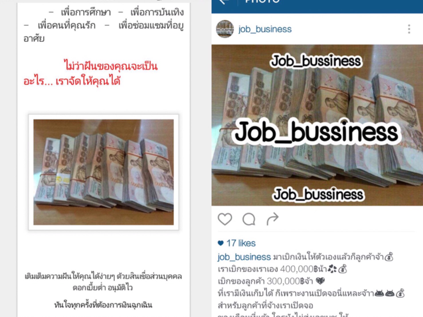 รูปเงิน -- ตอบว่าพี่ปล่อยกู้ (แต่ว่าชื่อคนที่โพสต์ให้กู้คนละชื่อ-นามสกุลกันกับน้ำค่ะ)