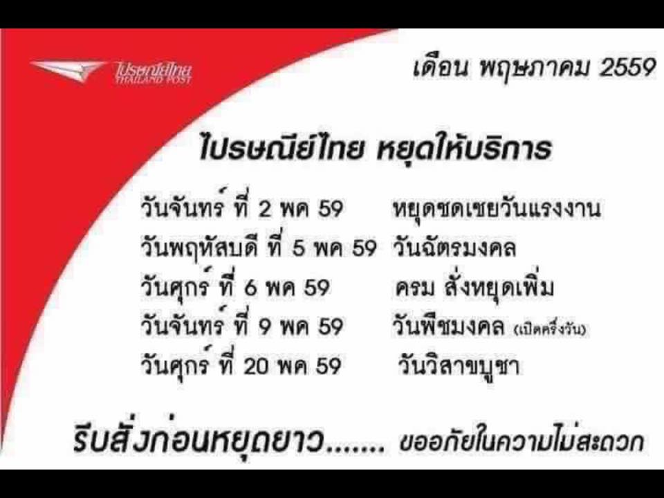 ลูกค้าโอนเงิน วัน ศุกร์ ที่ 6 เป็นวันศุกร์ พค 2559 วันหยุดราช