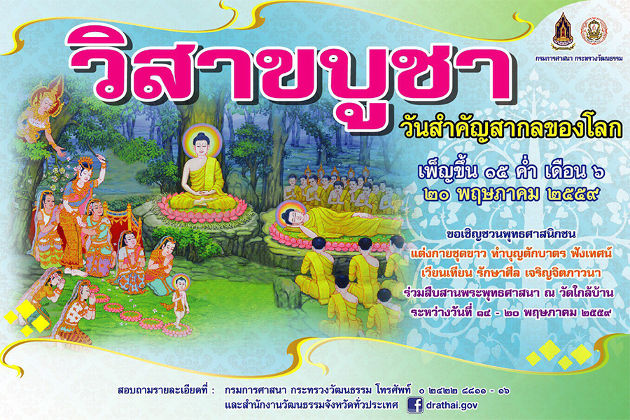 กิจกรรมไหว้พระ 9 วัด วันวิสาขบูชา 20 พฤษภาคม 2559 กรมการศาสนา กระทรวงวัฒนธรรม จัดกิจกรรมไหว้พระ 9 วัด สืบสิริสวัสดิ์ 9 รัชกาล เนื่องในเทศกาลวิสาขบูชา ประจำปี 2559 ณ วัดที่เข้าร่วมโครงการ 9 วัด ซึ่งเ