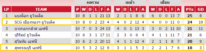 เมืองทอง - ยิงประตูได้มากที่สุดเป็นรองแค่ BG แต่เป็นทีมที่เสียประตูน้อยที่สุด