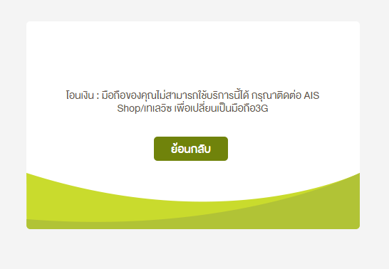 CC AIS : ใช้บริการโอนเงินไม่ได้ มีข้อความขึ้นแบบนี้คะ