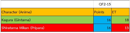 ขณะนี้ได้หมดเวลาสำหรับโหวตคู่ QF2-15ET แล้วครับ ซึ่งผลคะแนนออกมาดังนี้
