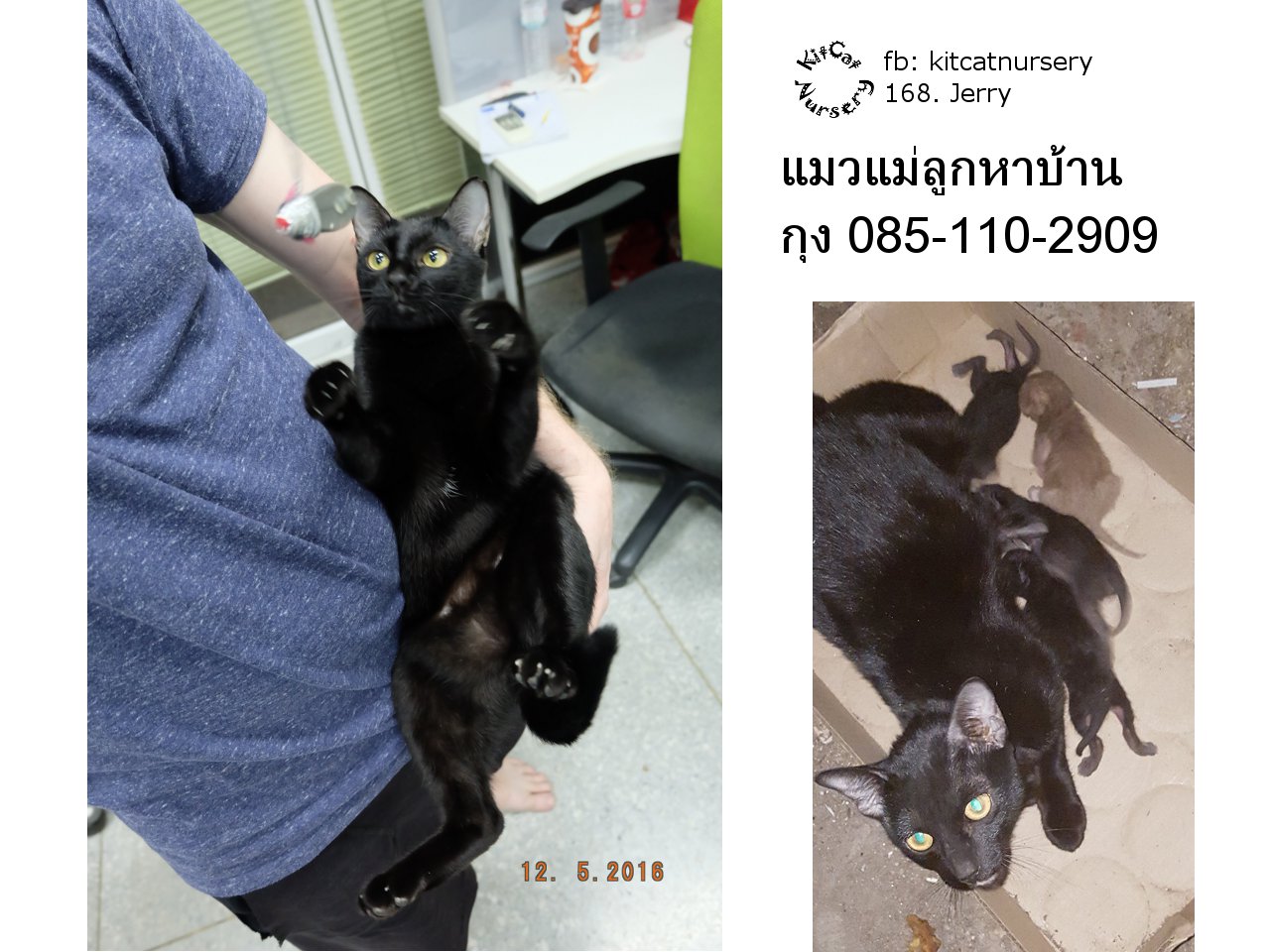 Jerry ยังเด็ก ตลก น่ารัก ขี้ประจบ ชอบอยู่กับคน แม่ลูกเล่นกันสนุกสนาน ลูกๆที่เหลือได้บ้านไปแล้ว