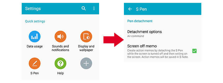 Setting > S Pen แล้วเลื่อนลงไปจนเจอกับหัวข้อ Screen off memo ก็ก็เลือกเช็คถูกได้เลยค่ะ