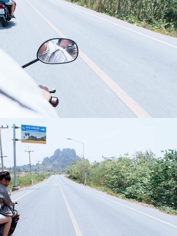 รถมอไซด์มารับแล้ว ระหว่างทางไปทะเลรู้สึกเหมือนได้ขับรถเล่นชมรอบๆเมืองเพชรบุรีไปในตัวอีกด้วย