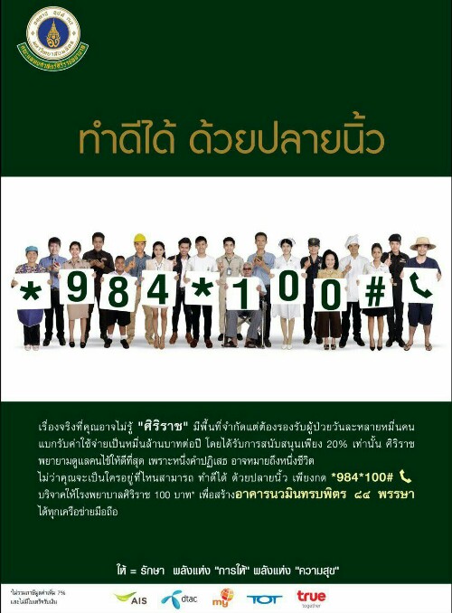 เพื่อบริจาคให้ รพ.ศิริราช 100 บาท