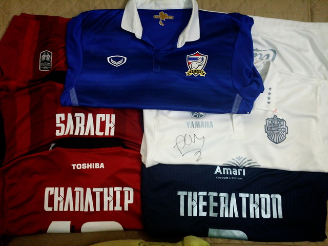 ตอนไปอีสาน ก็ไปสอย เสื้อ บรร มา 2 ตัว สีกรมสกีน อุ้ม ส่วนสีขาว เอาไว้ขอลายเซ็นต์ เพราะ เคยพลาด ตอนเสื้อทีมชาติสีน้ำเงิน แล้ว เมืองทองมาเตะ ที่โฮจิมินห์ ได้ลายเซ็นต์ โค๊ชแบน , ตอง ,มุ้ย และ ตังค์ แต่ปากกา เป็นสีน้ำเงิน เข้ากันซะมองไม่เห็น ลายเซ็นต์เลย เซงไป