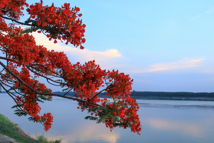 .. ฝั่งโขงเมื่อยามค่ำแลง ฟ้าเปลี่ยนสีแดงค่ำรอน ๆ.. ( มือใหม่หัดถ่าย 😁😁😁 )