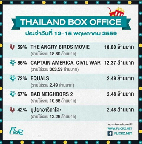 อัพเดตรายได้หนังในบ้านเรา ประจำวันที่ 5 พฤษภาคม 2559 !!!!