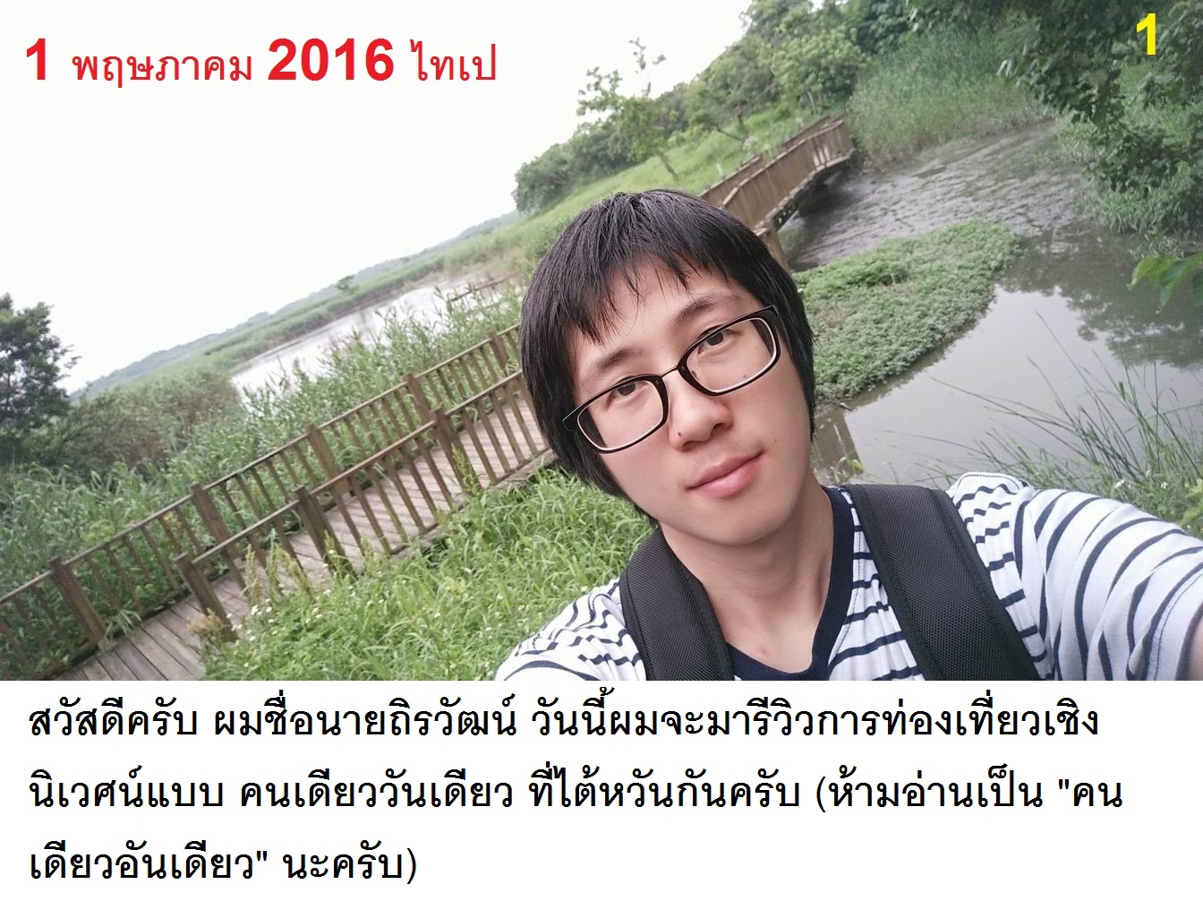 สวัสดีครับ ผมชื่อถิรวัฒน์ (ปินปิน) ผมเป็นนักศึกษาปริญญาเอกที่ไต้หวัน อยู่ที่นี่มาแล้วราวๆ 8 เดือน วันนี้อยากจะมาแบ่งปันประสบการณ์กับเพื่อนๆคนอื่นครับ ว่าผมไปเจออะไรมาบ้าง นี่เป็นกระทู้แรกของผม (สไตล์รีวิวอาจจะดูเกรียนนิดนึงนะครับ) เป็นการท่องเที่ยวแนวชมธรรมชาติ หรือแนวแปลกใหม่ที่ไม่ได้เขียนไว้ในหนังสือนำเที่ยว