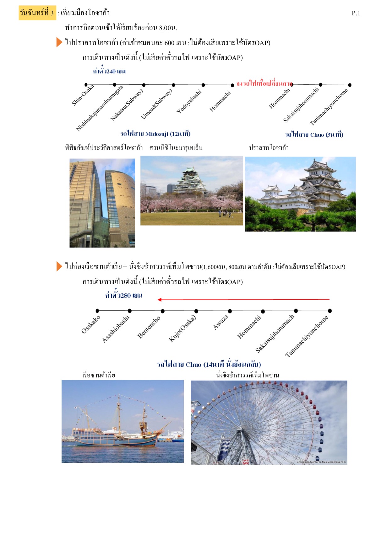 เรากำลังจะไปเที่ยวโอซาก้า ต้นเดือนตค.59จ้ะ เราก้ได้ทำโปรแกรมเที่ยวในแต่ละวัน