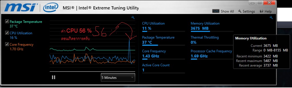 ภาพ CPU ตอนเครื่องค้างจะพุ่งไปที่ 56 % ครับ ปกติก็จะวิ่งน้อยกว่านั้น