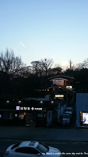ปิดท้ายด้วยวิวช่วงหัวค่ำ ที่มองออกมาจากที่ร้าน มองไปฝั่งตรงข้ามจะเห็นร้านขาย Sujebi