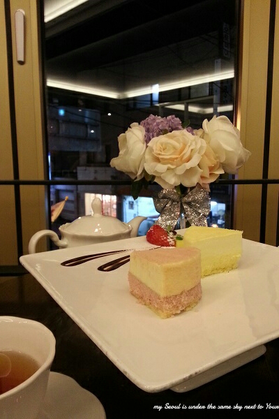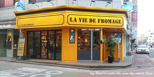 เริ่มที่ร้าน La Douce ก่อนไป เราเห็นในทวิตเตอร์ค่ะ มีชีสเค้ก น่าลองมาก เราเลยหาเวลาไปดู เห็นว่าอยู่ Hapjeong ไปสะดวก