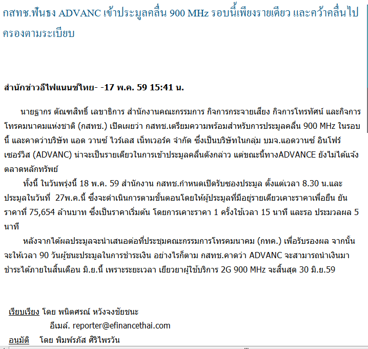Eastw พอแพ้ประมูลถึงกับเป๋ แล้วถ้า advanc แพ้บ้างล่ะ คนที่ชนะจะทำอย่างไร เสาสัญญาณก็ไม่มี อาจจะต้องมาเช่ากับ advanc