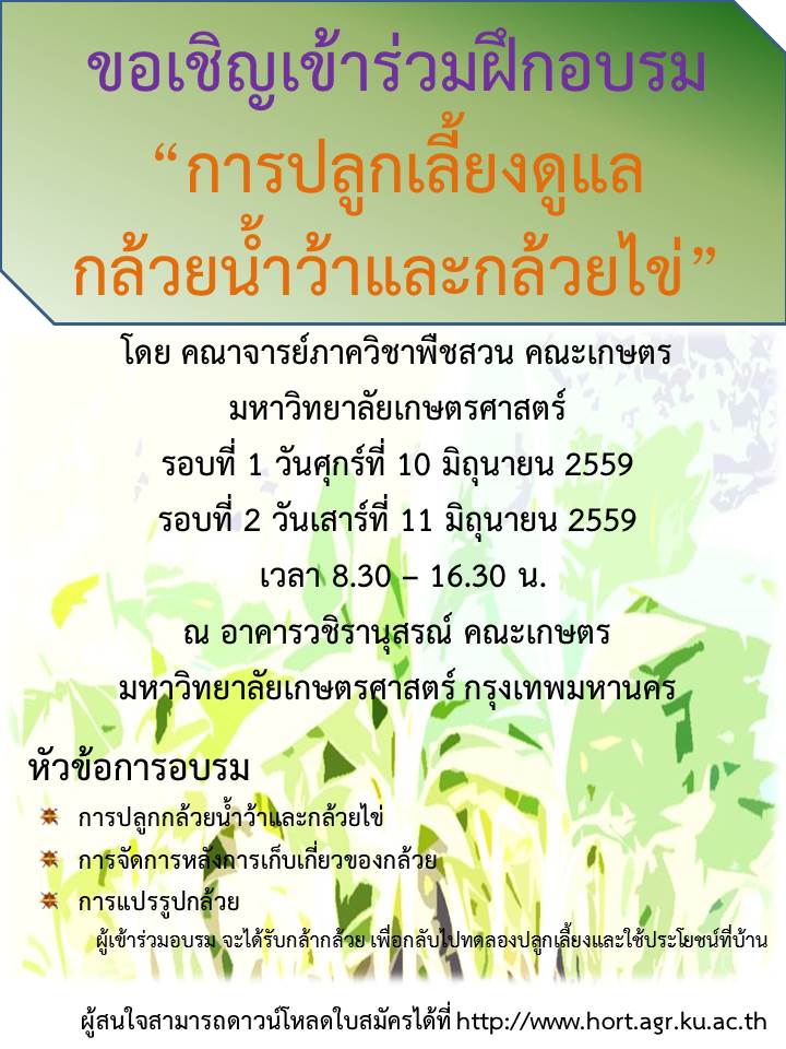 ฝึกอบรม"การเลี้ยงดูแลกล้วยน้ำว้าและกล้วยไข่" ฟรี!!!!!!!!!!!!!!!!!!