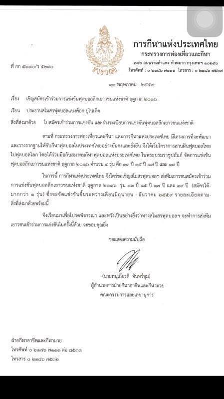 กกท.เริ่มร่อนจดหมายรับสมัครลีคเยาวชน เริ่ม มิ.ย.