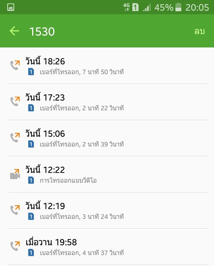 ซึ่งภายในวันนี้ผมได้โทรไป1530 จำนวน4ครั้งตามในรูป (วิดีโอคอลนั่นกดผิด)