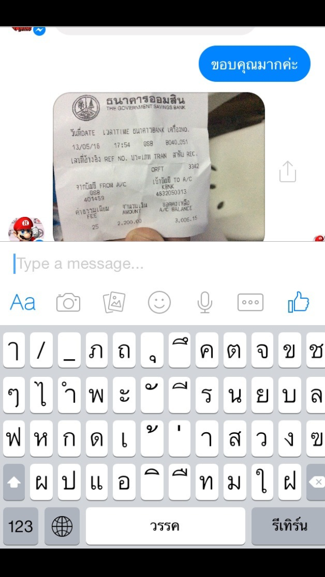 ทางคุณ W. ตอบมาว่า เราก้เครียดนะคะเจอแบบนี้ กำไรก้ไม่ได้ไม่เปนไร ลูกค้ามาไม้สบายใจอีก. เราคืนมัดจำทุกขิ้นให้เลยก้ได้ค่ะ จะได้สบายใจ และเราจะยอมเข้าเนื้อด้วยละกันค่ะ คืนให้อีก1000 กำไรต่อชิ้นเราก้แค่200กว้า เราเจองี้ก้เครียดเหมือนกันค่ะ แต่ขอคืนหมดเลยลักันค่ะสบายใจทั้ง2ฝ่าจ ซื้อกะร้านเราตลอดก็น่าจะทราบดีไม่เคยมีปัญหา มีครั้งนี้ครั้งแรกเพราะเปนชุดเราเลยต้องให้คนที่ฐปกดให้เพราัมันไม่รับบัตรไทย ปกติร้านเราก้ไม่เคยมีปัญหา จ่ายช้าเราก้โอเคเรื้อยๆ เวลาไม่ได้ของหรือถ้าไม่ได้จิงๆก้คืนเตมจำนวนตลอด แต่นี่มันคืนมาเท่านี้ก้สุดๆแล้วจิงๆ เรื่องก้ตั้งแต่ปีก่อร ทวงยากมาก เราตามทวงตามจิกให้ทุกอาทิต ยังไงเราว่าคืนเงินทั้งหมดเลย+เรายอมจ่ายเองอีก1000 ละกันค่ะ เดี๋ยวโอนไปให้2500. ส่วนนี่แชทที่เราคุยกะคนสั่วนะคะ ว่าเราคืนตามที่เราได้มาจิงๆ >>>> พอทางร้านบอกมาแบบนี้เราก็สงสารคุณ W เลยค่ะ แบบเค้าไม่ได้ผิดอะไร คนกลางเป็นคนผิด เค้าควรชดใช้ ไม่ใช่คุณ W