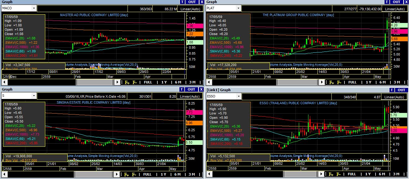 สวัสดีครับ Elite Traders 19/5/59 STOCK EST ตัวที่บวกจากหุ้นชุดที่ลงไว้เมืื่อวันก่อน NNCL PACE TNP ESSO ..................... พักตัวต่อ DCROP PJW CHOW TWPC MACO PLAT S CI PTG SLP BIG ..