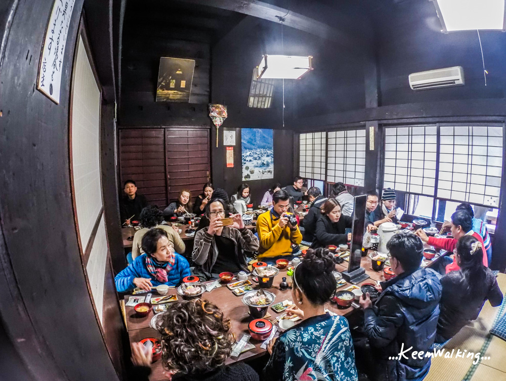 พอไปถึงหมู่บ้านชิราคาวาโก๊ะ ตามสเต็ป ถ่ายland mark ก่อนเลย สะพานข้ามไปยังหมู่บ้านหวาดเสียวมากๆ ลมแรงมากวันนั้น เดินสำรวจสักหน่อย กลิ่นไอของหมู่บ้านนี้ยังคงรักษาความคลั่งของวัฒธรรมของญี่ปุ่นได้เป็นอย่างดี ตอนที่ไปหิมะเริ่มตกผู้คนเริ่มเข้าไปอยู่ในบ้านกันอากาศหนาวมาก แต่ละบ้านจะขายของที่ระลึกกันเป็นส่วนใหญ่อาจจะเป็นเพราะช่วงหิมะตก ชาวบ้านไม่สามารถปลูกข้าวหรือพืชผักได้ ก็เลยต้องหาทางรอดขายของให้นักท่องเทียว บรรยากาศคูลมากๆ เดินๆไปรู้สึกหนาวๆ เลยหาอะไรร้อนๆกินสักหน่อย