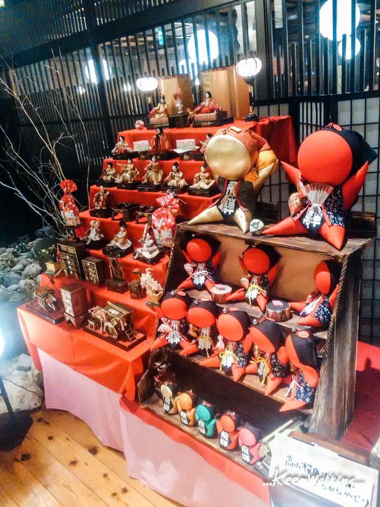 กินเสร็จกำลังจะเดินออกไปแช่เท้าก็จะพบกับเจ้า Mascot ประจำเมือง Takayama นั้นคือเจ้า Sarubobo ตุ๊กตาสีแดง ไม่มีหน้า สัญลักษณ์ประจำเมือง เจ้า Sarubobo นี้ สมัยก่อนเป็นตุ๊กตาที่คุณยายจะทำให้คุณลูกสาวและหลานสาวเพื่อเป็นเครื่องรางนำโชค ให้มีชีวิตแต่งงานที่ดี ครอบครัวมีความสุข ส่วนสมัยนี้ ก็มีทำขายเป็นตุ๊กตาของที่ระลึกประจำเมืองไปแล้ว