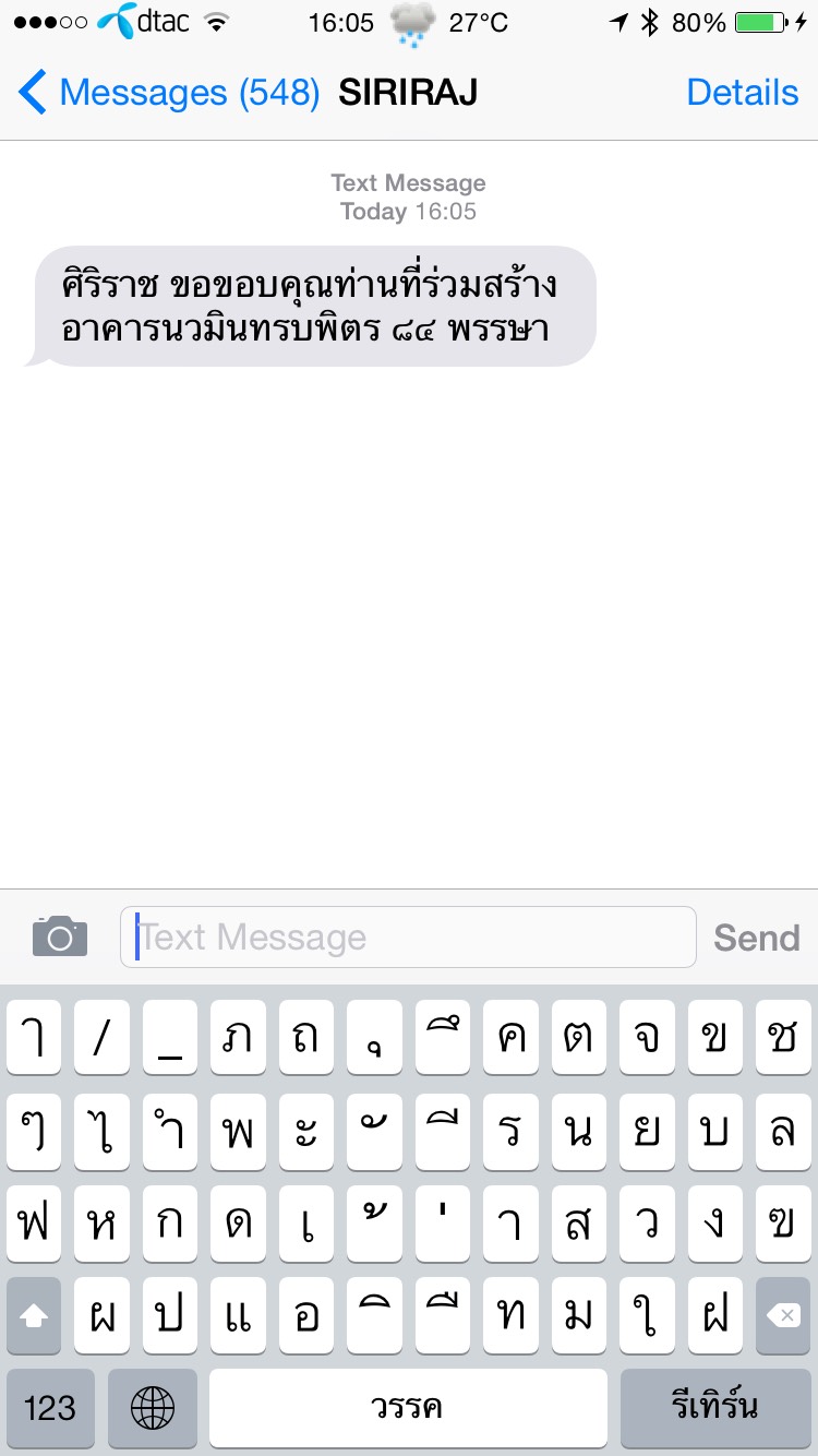 เชิญเพื่อนๆ ส่ง sms บริจาค สร้างอาคาร นวมินทรบพิตร ร.พ.ศิริราช ซึ่งเป็นโครงในร.พ.ศิริราช โครงการสุดท้ายของร.9 กด *984*100# โทรออก (ครั้งละ100บาท) เบื้องต้น เราบริจาคไปพันนึง ขอให้ส่วนบุญแก่ทุกท่านที่