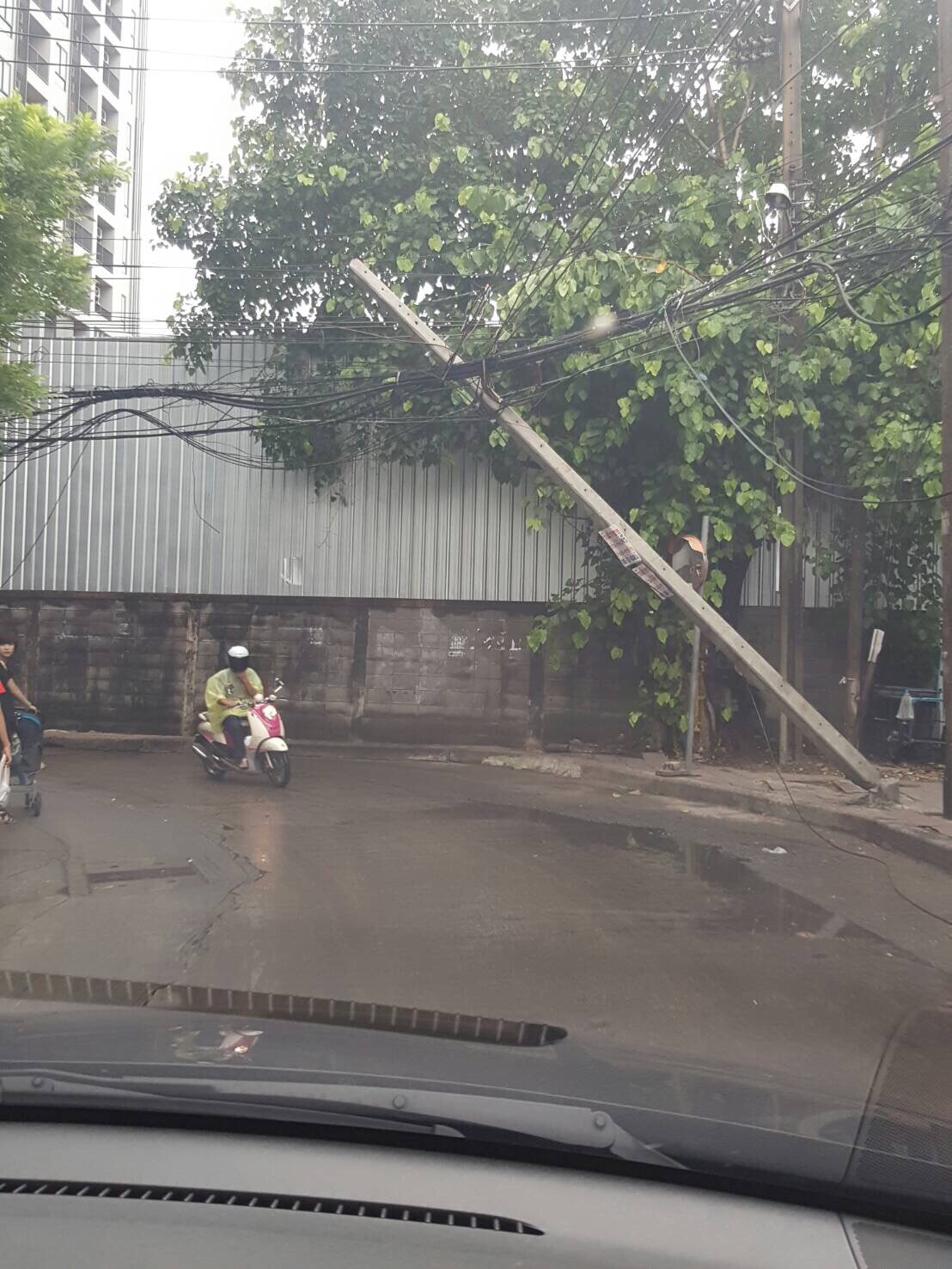 1. เสาต้นนี้มีความเอียงเอน ณ ซอยสุขุมวิท 81 แยกซ้าย ตั้งแต่วันที่17/5/59 7:36 แจ้ง 1130 ให้ช่วยมาตรวจสอบ