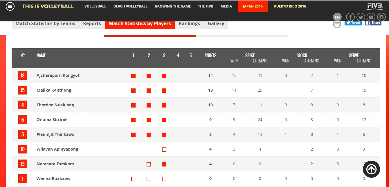 Frauke Dirickx จากเบลเยี่ยม ค่าเฉลี่ยสูงเวอร์มากๆ ( ไม่รู้ FIVB คำนวณไรผิดเปล่า 555 ) ของไทย พรพรรณ ทำได้แค่อันดับ 16 เท่านั้น ถ้าเทียบกันในเอเชียก็ต่ำสุดเลย จีน 2 ญี่ปุ่น 3 คาซัค 10 ไทย 16