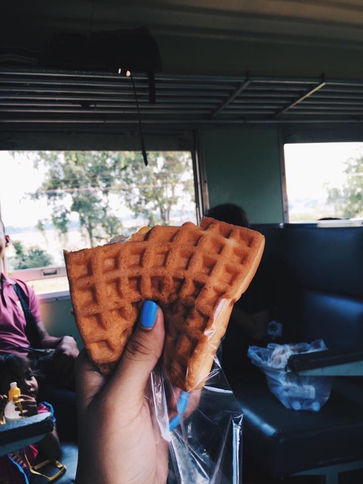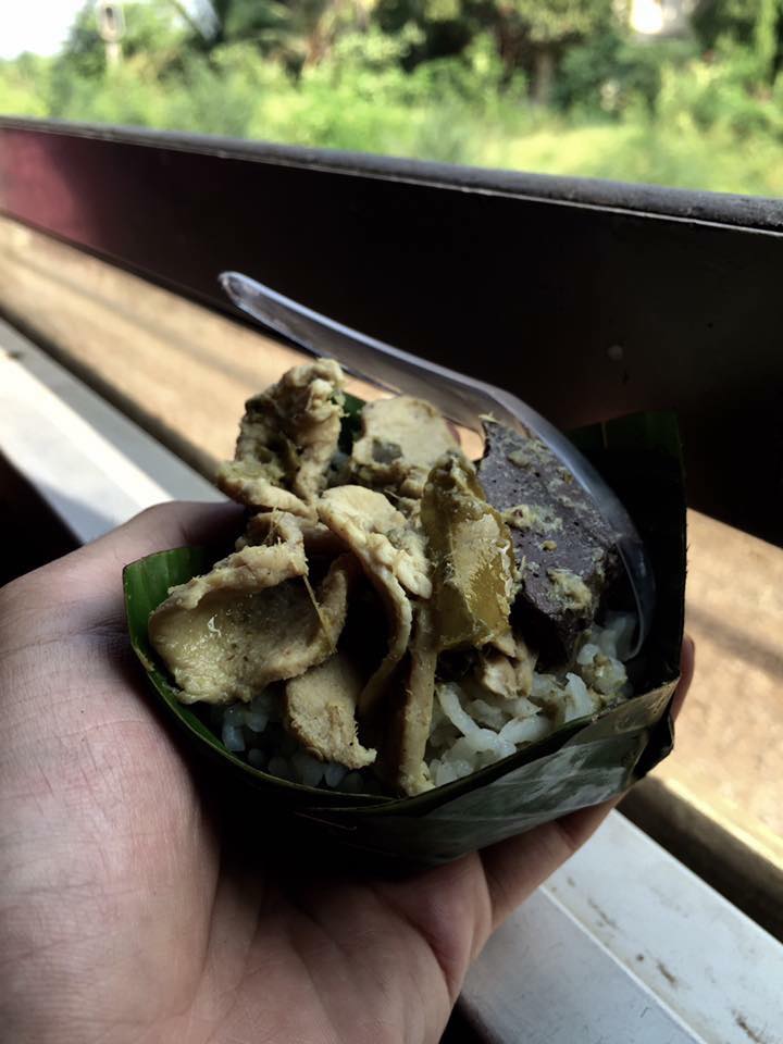 หลังจากรับตั๋วฟรีเสร็จก็มานั่งทานโจ๊กและต้มเลือดหมูกันที่ข้างสถานีรถไฟ คุยกันนิดๆหน่อยๆก็เริ่มใกล้เวลารถไฟมาแล้วค่ะ รถไฟมาตอน7:50เป๊ะๆ